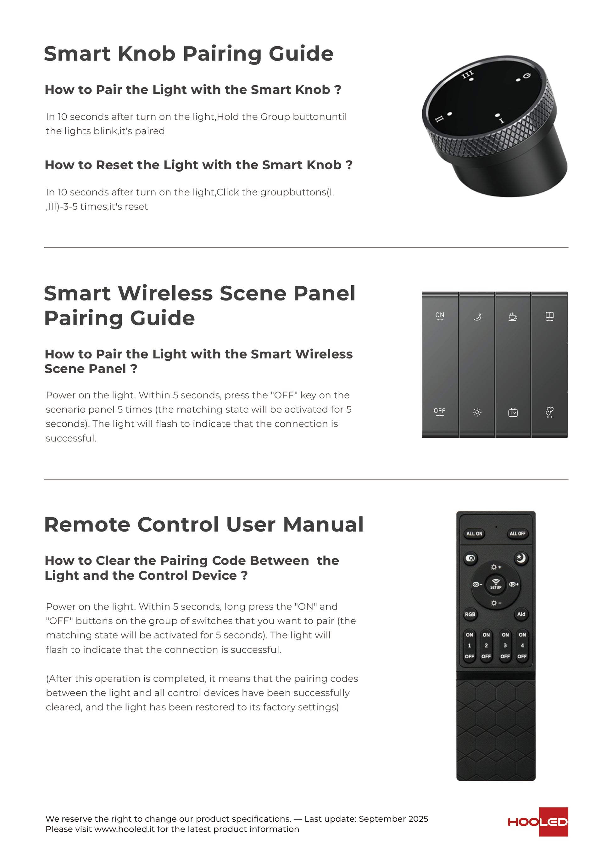 - Control Method: Wall switch + 2.4G remote control + APP + Smart Knob + Scene Panel
