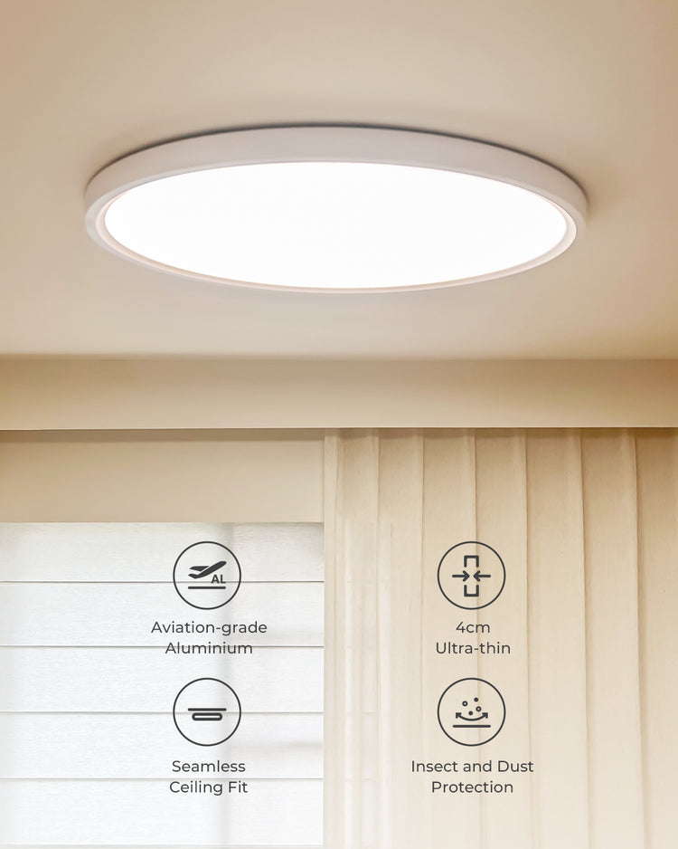This ceiling light features a minimalist, ultra-thin design with an all-aluminum body for excellent heat dissipation.
